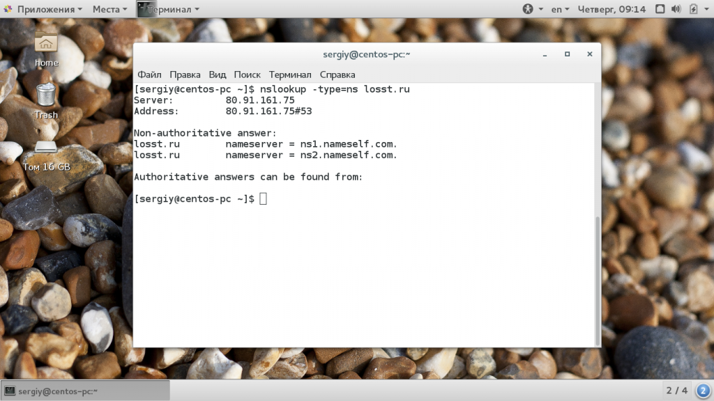 Команда выведет список используемых серверов имен, например, у нас это ns1.nameself.com. Обычно это от двух до четырех серверов. Если есть авторитетный источник для получения информации, то он указывается в нижней части вывода. Например, если мы запросим информацию у сервера имен ns1.nameself.com, то это уже будет авторитетный ответ: