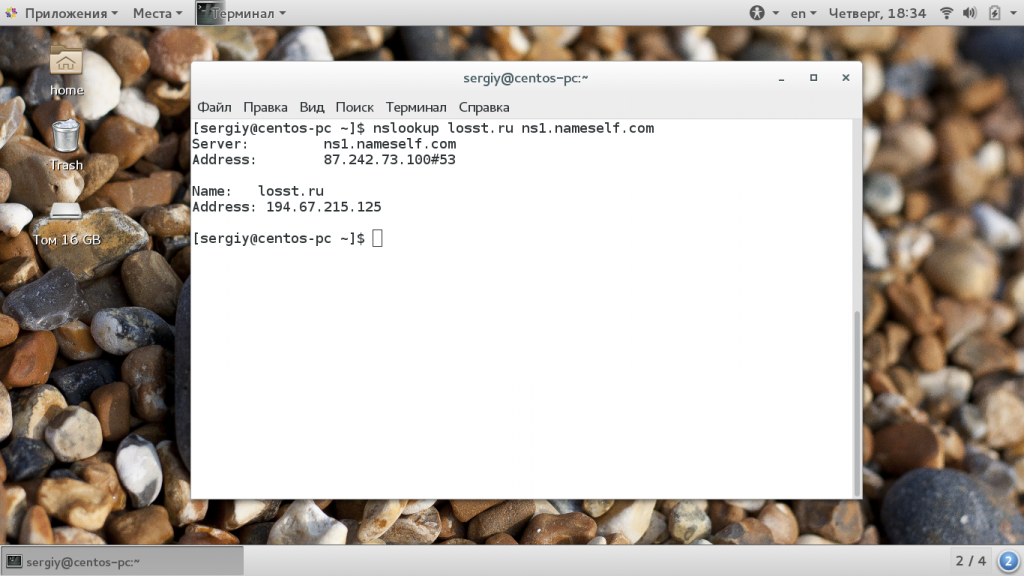Сначала посмотрим ip адрес для losst.ru. Для этого не нужно передавать никаких дополнительных параметров, только само доменное имя: