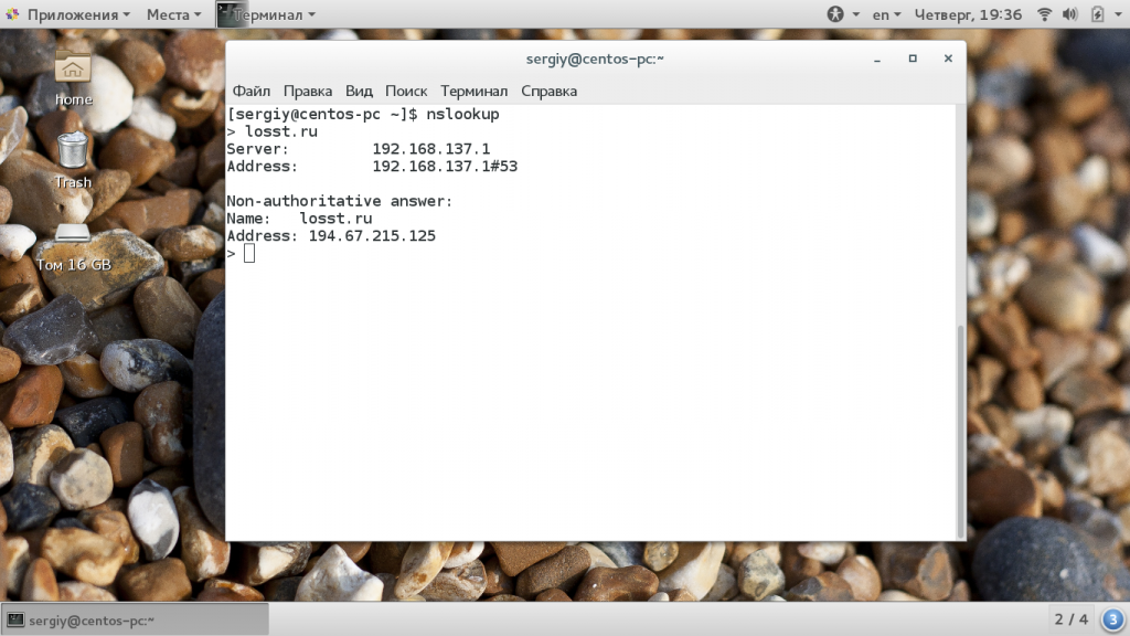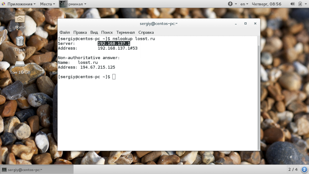 В выводе утилиты мы можем видеть ip адрес 192.168.137.1, это не адрес сервера, а наш, системный DNS сервер. В следующей строке выводится тот же ip адрес и порт, это адрес DNS сервера вместе с портом. По умолчанию порт — 53. И только после этого находится информация про запрашиваемый сайт. Наш ip адрес 194.67.215.125, это означает, что все пакеты, которые вы будете отправлять на losst.ru будут приходить на этот адрес.