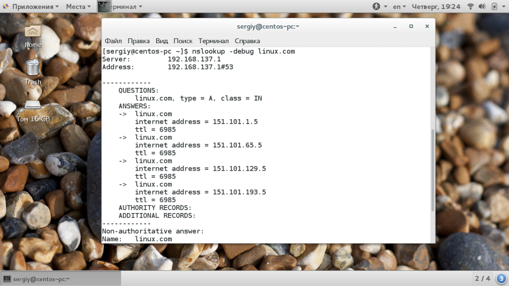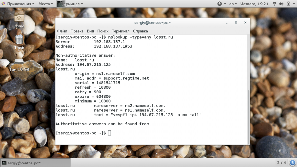 Иногда вы можете получить в ответе утилиты сообщение «Non-authoritative answer». Ответ считается авторитетным, только если наш DNS сервер имеет полную информацию о зоне, для рассматриваемой области. Чаще всего, у нашего сервера будет не вся информация, а кэш последнего ответа от авторитетного сервера. Такая информация считается не авторитетной, хотя она была получена из авторитетного источника, но сам DNS сервер таковым не считается.