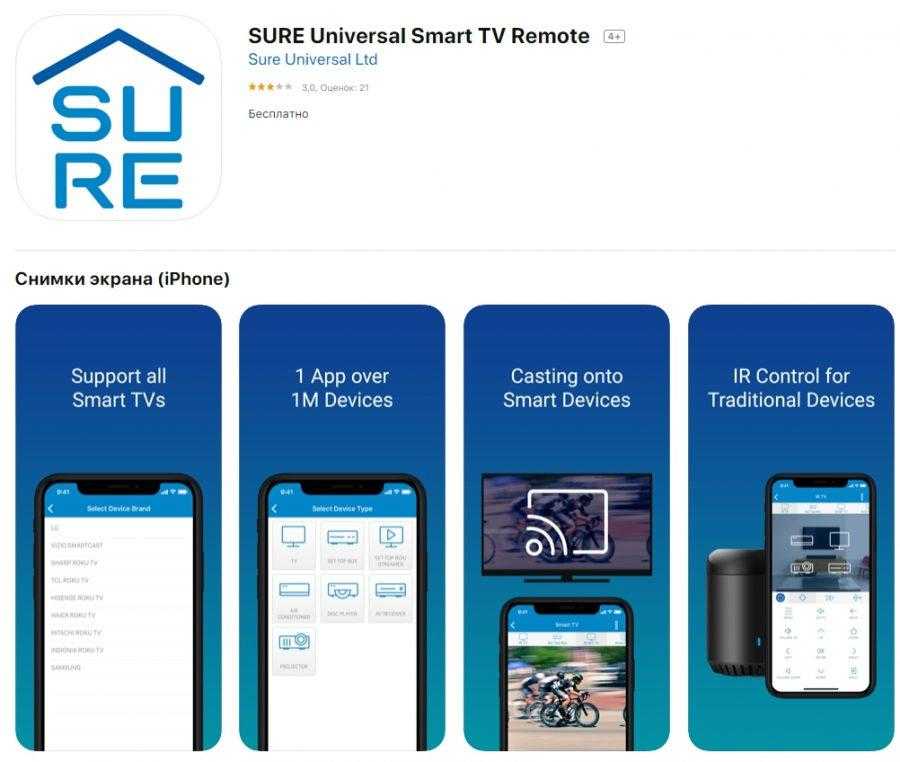 Первое, что следует отметить в приложении SURE Universal Remote, что в отличие от всех ранее рассматриваемых программ, данное программное обеспечение поддерживается устройствами работающими на двух популярных операционных системах: Android и iOS.