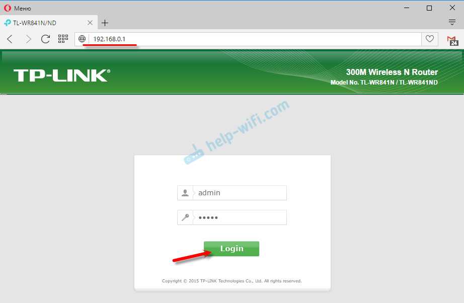 В данном случае нам надо в браузере набрать адрес «http://tplinkwifi.net» и ввести логин/пароль admin/admin. Зайти в админку WR841N также можно и по его стандартному IP адресу «192.168.0.1» или «192.168.1.1», в зависимости от модели.