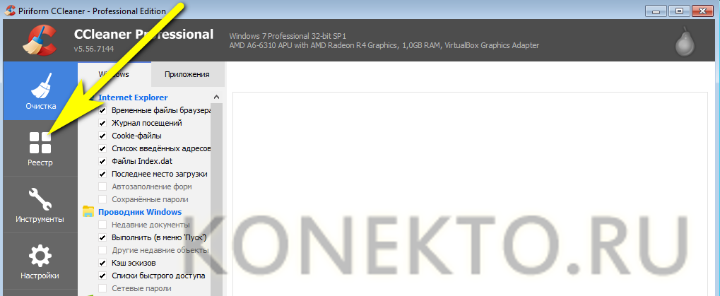 3) В левом верхнем углу окна, нажимаем левой кнопкой мыши надпись «Чистка реестра».