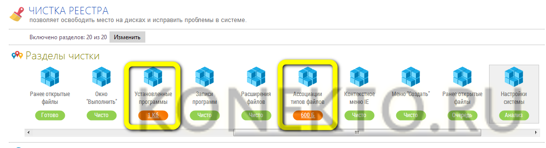 А на верхней панели — посмотреть, какие разделы реестра содержат ошибочные записи; они отмечены красным.