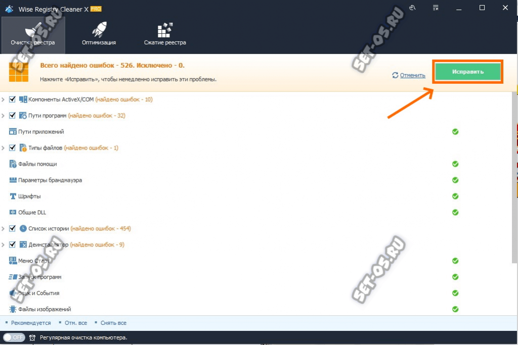 После проведённого анализа, утилита выдаст список ошибок. Вам останется только нажать на кнопку «Исправить»: