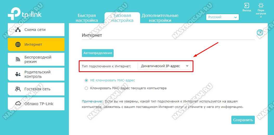 Если после подключения, интернет со второго роутера не заработает, то первым делом сделайте на нем сброс настроек, а затем проверьте, чтобы в настройках роутера который мы подключаем, было выставлено автоматическое получение IP адреса (Динамический IP). На Tp-Link, это делается так: