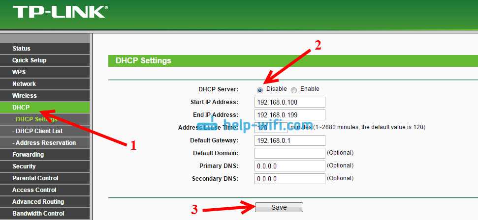 Примечание: Вот здесь есть инструкция как отключить DHCP-сервер для других моделей роутеров.