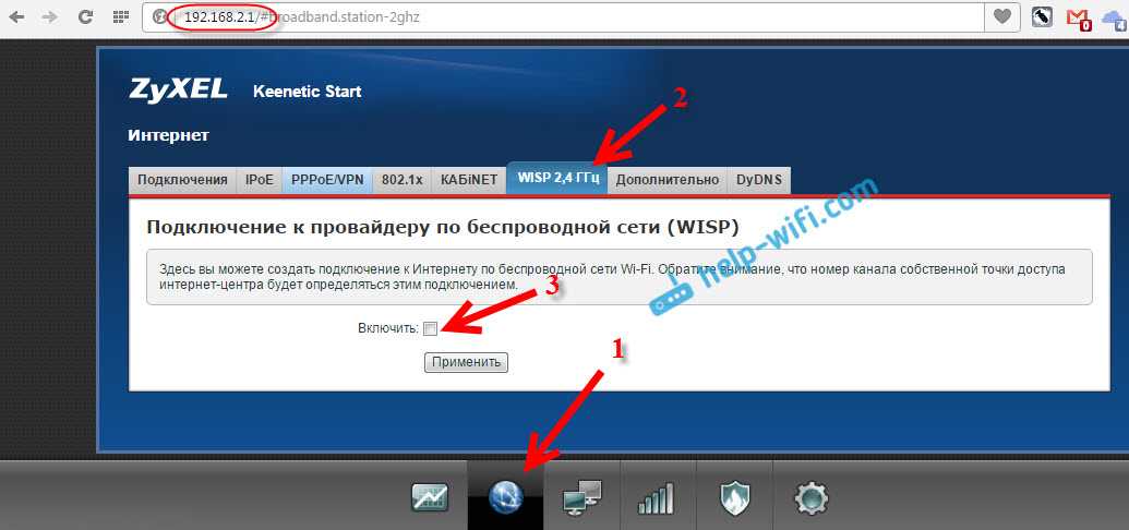 На устройствах Zyxel Keenetic все отлично сделано. Там для использования роутера Zyxel Keenetic в режиме моста нужно настроить его на подключение к провайдеру по Wi-Fi. Этот режим еще называется WISP. В нашем случае, в качестве провайдера будет выступать главный роутер, который уже транслирует Wi-Fi сеть. Я уже писал подробную инструкцию с картинками по настройке этой схемы. Смотрите статью: режим клиента (беспроводной мост) на роутере Zyxel Keenetic.