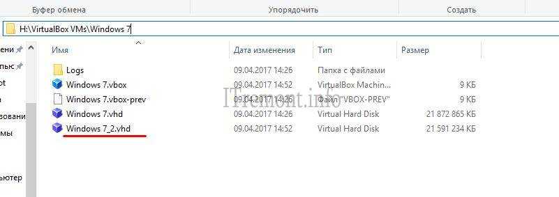 - H:VirtualBox VMsWindows 7Windows 7_2.vhd – расположение созданного диска(клона).