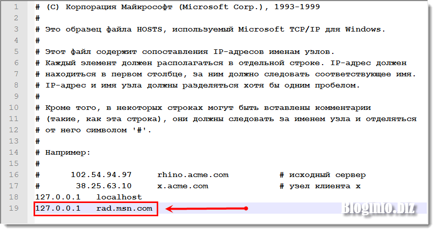 Все, что нам нужно сделать, это прописать в него строчки: 127.0.0.1 rad.msn.com и 127.0.0.1 preview.msn.com (каждую с новой строки).