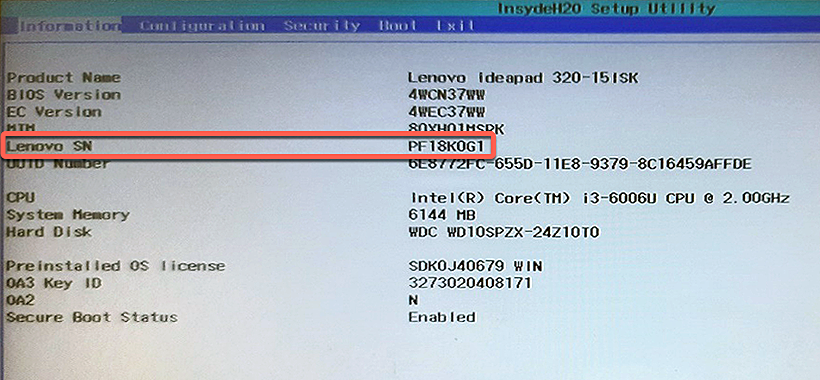 Версии BIOS могут различаться, поэтому в некоторых случаях для просмотра серийного номера потребуется в главном окне «Main» с помощью клавиш со стрелками перейти к пункту «Serial Number Information», затем нажать на Enter, чтобы узнать уникальный код устройства.