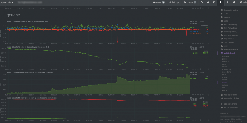 Here’s a screenshot where I used Netdata (listed on the 100 Top Server Monitoring & Application Monitoring Tools) for query cache overview…