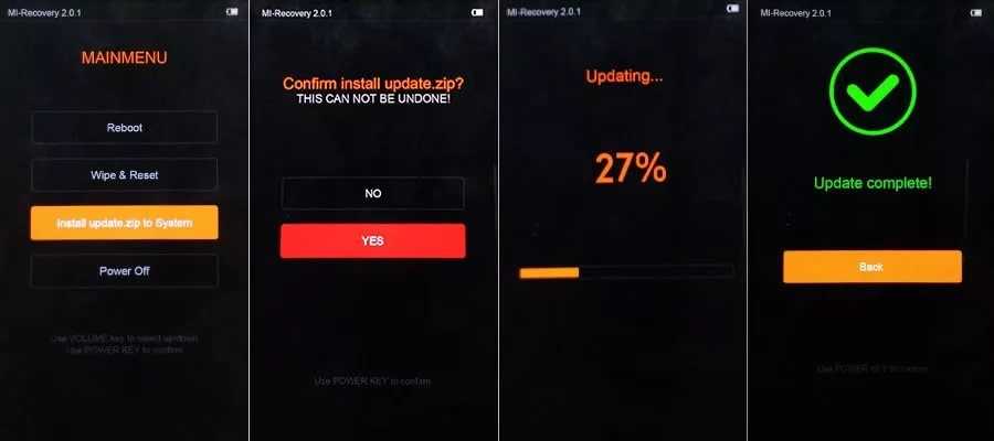 Выберите родной язык и запустите установку, нажав на надпись “Install update.zip to System”. Подтвердите начало обновления. Смартфон начнет автоматический переход на последнюю версию системы.