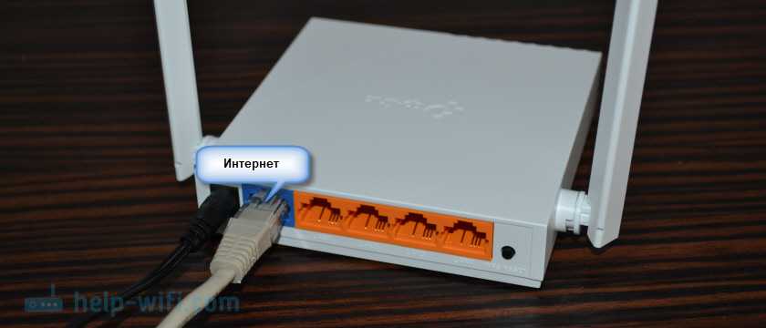 Дальше, к роутеру, в WAN разъем (он синий) нужно подключить кабель вашего интернет-провайдера, или от ADSL модема.