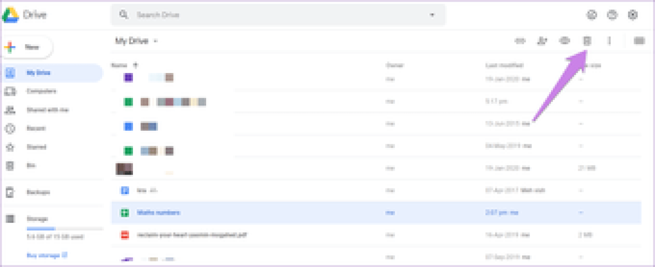 Не видите столбцов «Использование Диска» и «Общий объем хранилища»? Чтобы их добавить, на панели инструментов сверху нажмите на значок Ещё > Выбрать столбцы.