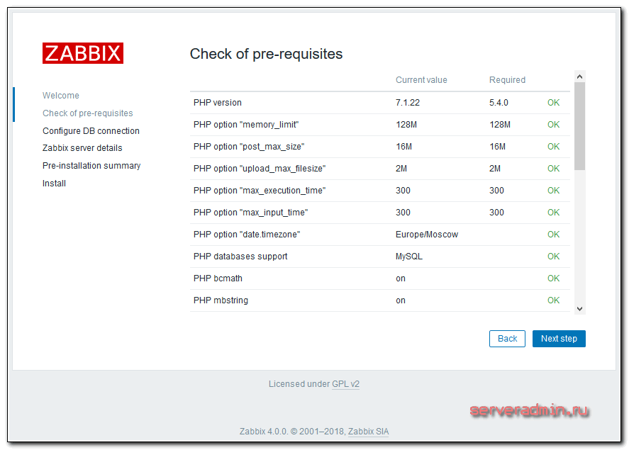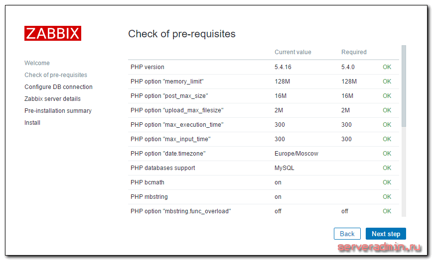 Жмем Next step и попадаем на страницу проверок. Если все делали точно по инструкции, то все проверки у вас будут пройдены.