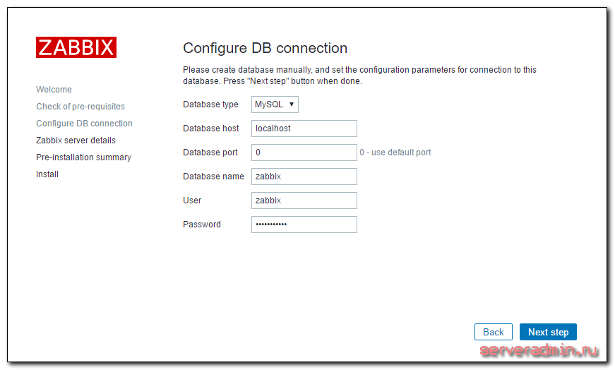 | zabpassword | пароль пользователя zabbix, у которого полный доступ к базе mysql zabbix |