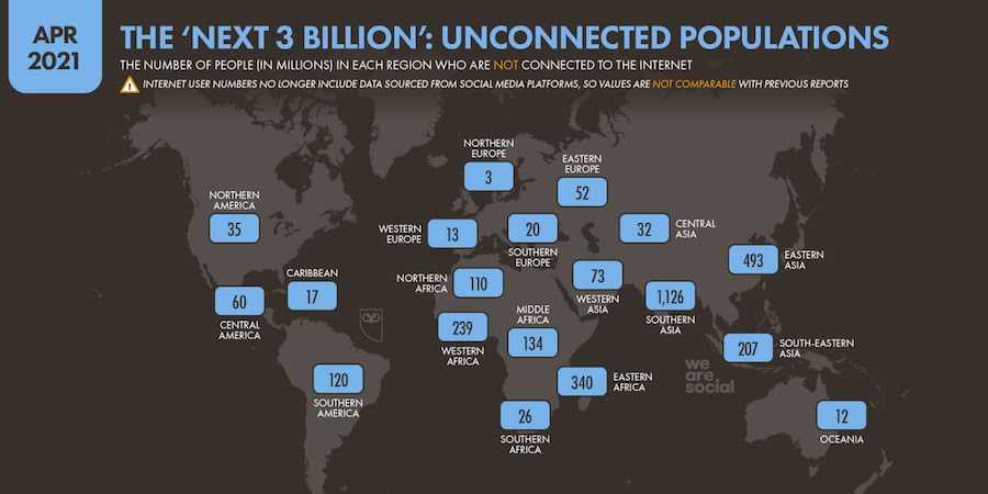 В 2011 году специальный докладчик ООН по вопросам защиты прав на свободу мнений и их свободное выражение Франк Ла Рю отмечал, что интернет ускоряет экономическое, социальное и политическое развитие стран и способствует прогрессу человечества в целом. Тогда доступа к Сети не было почти у 5 млрд человек. Спустя десять лет проблема не решена — 3,1 млрд людей остаются «неподключенными» — и при нынешних темпах роста числа онлайн-пользователей нужно еще минимум десять лет, чтобы их подключить.