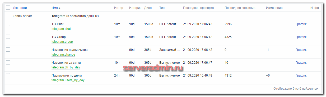 На этом у меня по мониторингу подписчиков телеграм в zabbix все.