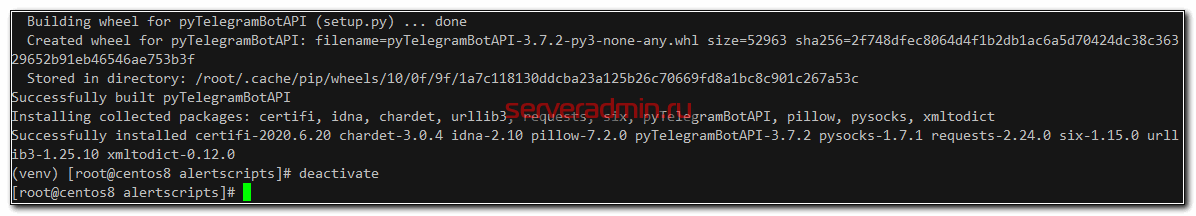 Переходим в /usr/lib/zabbix/alertscripts, создаем виртуальное окружение и активируем его.