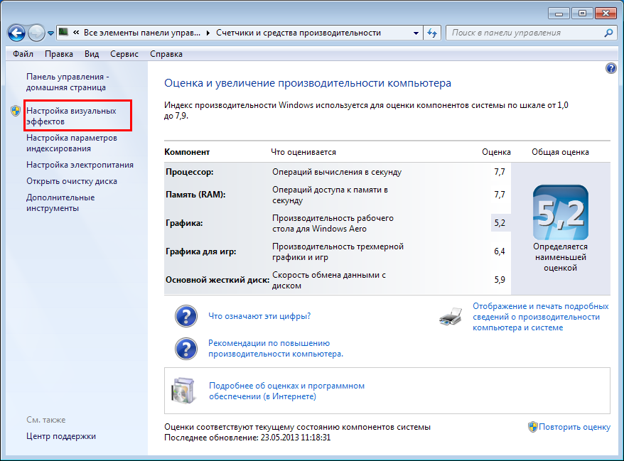 Отключаем визуальные эффекты
