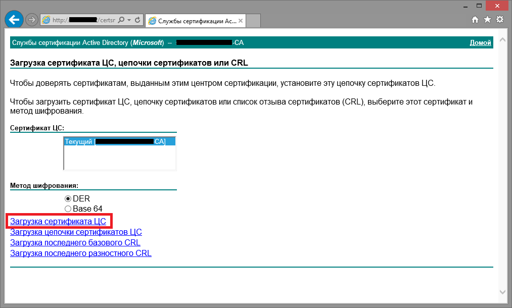 Для начала сохраним сертификат корневого центра, чтобы потом распространить его через групповые политики (немного забегаю вперед):