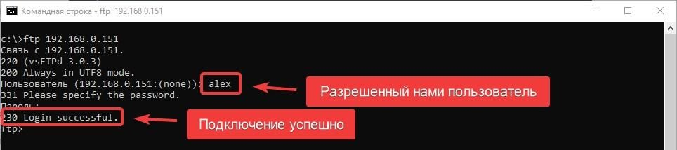 Пользователь alex в свою очередь наоборот, должен иметь возможность подключаться, читать и записывать файлы. Давайте попробуем подключиться под назначенным вами пользователем: