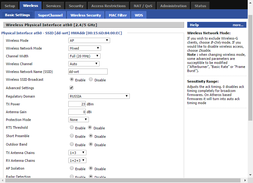 В настройках DD-WRT можно вручную отрегулировать мощность передатчика.