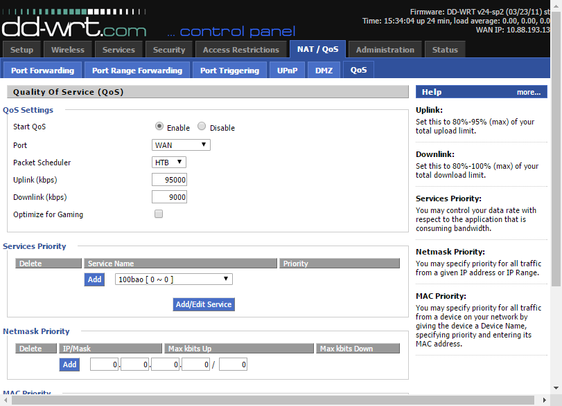 Входящую и исходящую скорость вы можете измерить с помощью соответствующих онлайн-сервисов, таких как, например, speedtest.net/ru. А чтобы установить для беспроводной сети пропускную способность, в разделе выбора приоритетов служб «Services Priority» выберите нужную сеть, нажмите «Add Service» и введите желаемые значения скорости.
