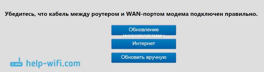 Проблема была в том, что роутер не мог сам настроить интернет через модем. А WAN-кабель у меня не подключен. Когда я нажимал на кнопку «Интернет», то открывались настройки, где можно было без проблем настроить подключение к провайдеру (PPPoE, Динамический IP и т. д.). Но настроек 3G модема там не было.