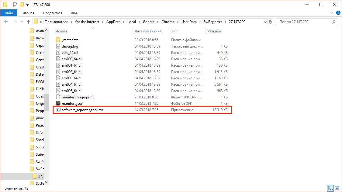 Рисунок 2. Файл software_reporter_tool.exe и его месторасположение на компьютере