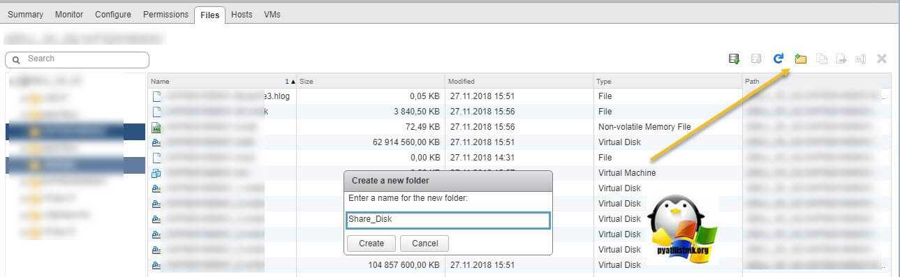Как подключить общий диск в VMware ESXI 6.5 и выше