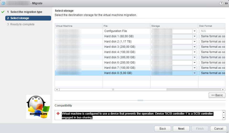 Например, при попытке сделать Storage vMotion вы получите ошибку: