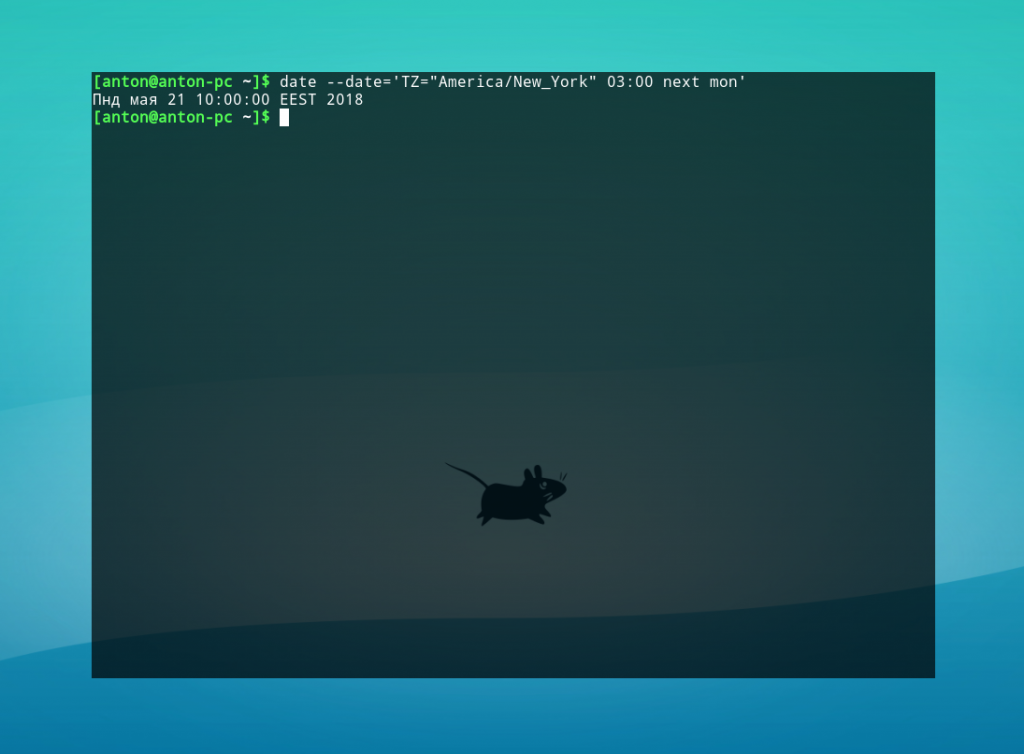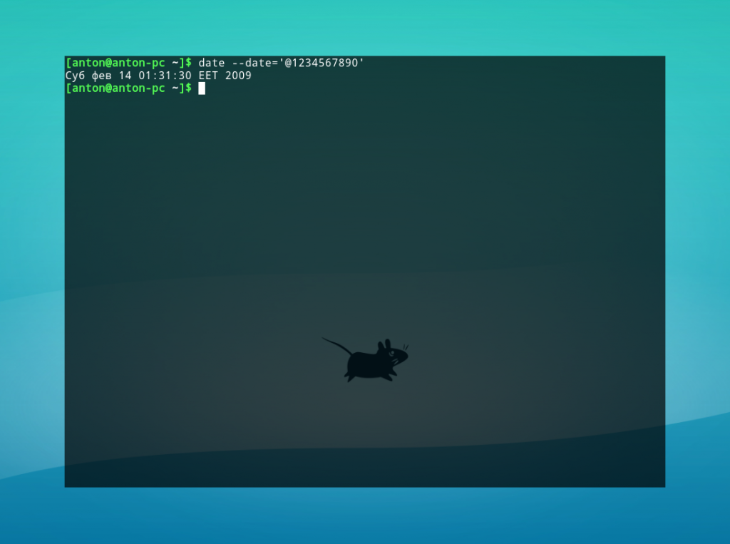 Если дать команду date без аргументов или если аргументы начинаются с символа «+», то по-умолчанию будет выведено текущие значения даты и времени. В ином случае производится установка даты и времени, передаваемые в аргументах в каком-либо из форматов. Например, для установки времени введите команду