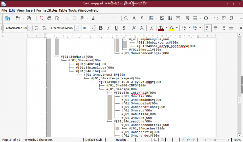 Стандартно результат команды tree направляется в терминал. Но есть возможность напечатать его в файл и сохранить для дальнейшего использования. С этой целью создадим документ txt с названием tree_command_results и поместим его в корневой каталог. После этого выполним команду следующего вида: