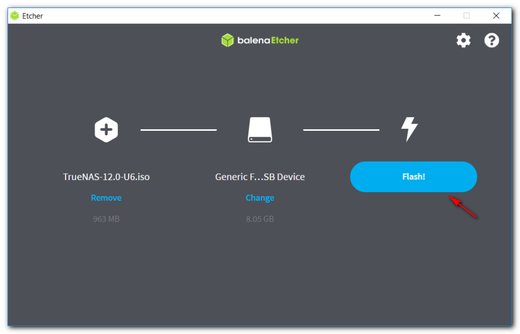 Давай рассмотрим пример того, как создать загрузочную USB флешку из установочного образа ОС TrueNas CORE при помощи бесплатной утилиты balenaEtcher.