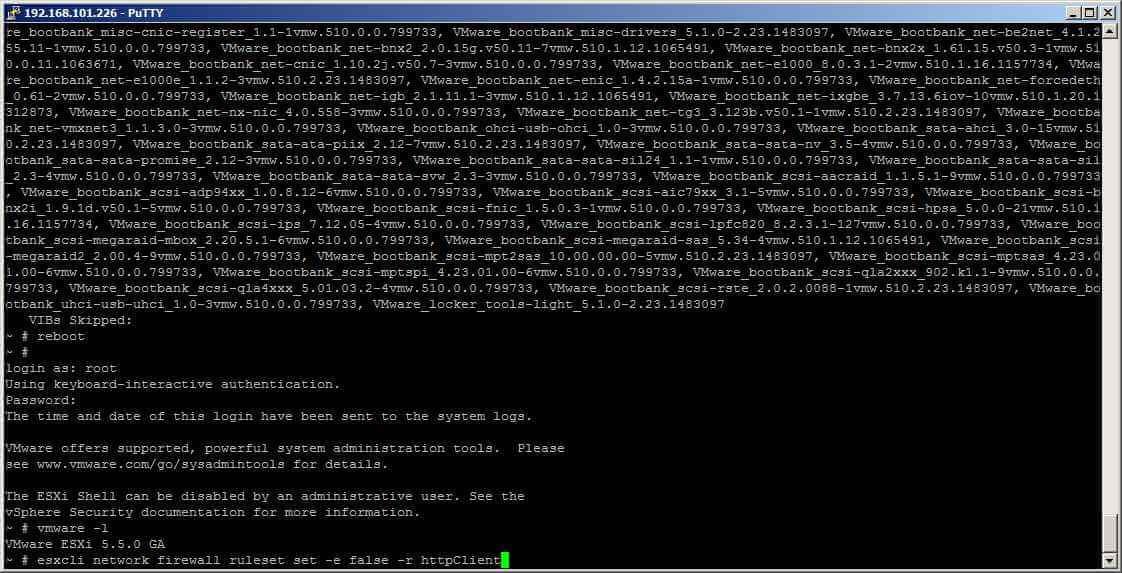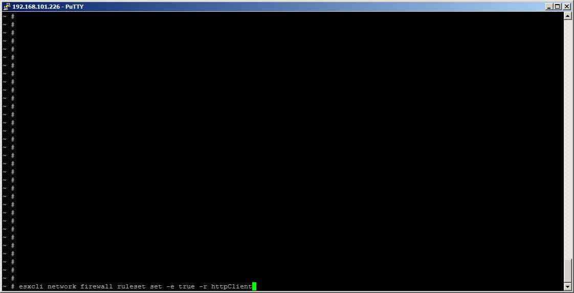 | 1 | esxcli network firewall ruleset set-etrue-rhttpClient |