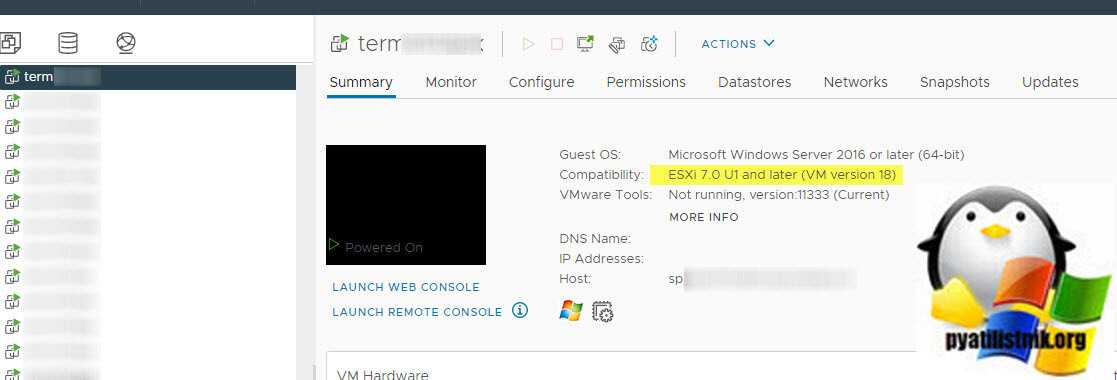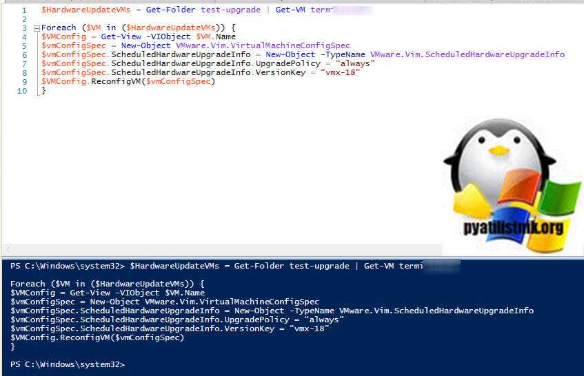 Обновление версии виртуальной машины в ESXi через PowerCLI