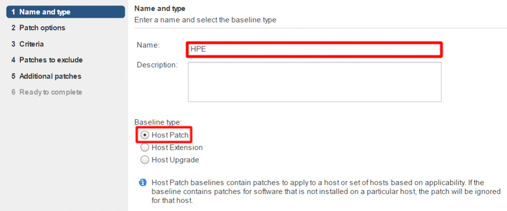 Запустится мастер создания нового бэйзлайна. Укажите его имя и его тип (Baseline Type). В нашем примере мы выберем Host Patch (также можно использовать и Host Extension).