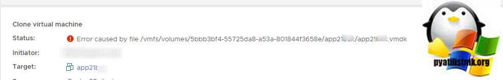 Clone virtual machine: Error caused by file /vmfs/volumes/5bbb3bf4-55725da8-a53a-801844f3658e/app21/app21.vmdk
