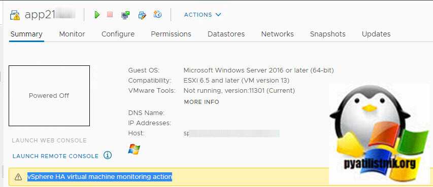В один прекрасный, рабочий день в одном из прекрасных телеграм чатов, один прекрасный разработчик написал, что у него перестал работать сервер 1С. Сама виртуальная машина вела себя очень странно, в веб-интерфейсе vCenter она имела статус «vSphere HA virtual machine monitoring action». Все крутилось на ESXI 6.5 и управлялось через vCenter 7.