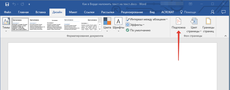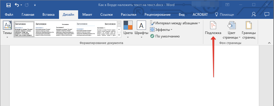 2. В группе “Фон страницы” нажмите на кнопку “Подложка”.
