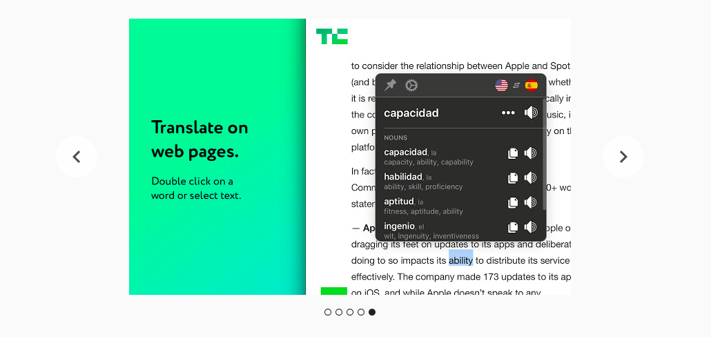 Лучший из всех доступных для Google Chrome переводчиков. В браузере Google, конечно, уже есть фирменный сервис по переводу страниц и отдельных слов, но на фоне Mate Translate он выглядит довольно скучно и слабо.