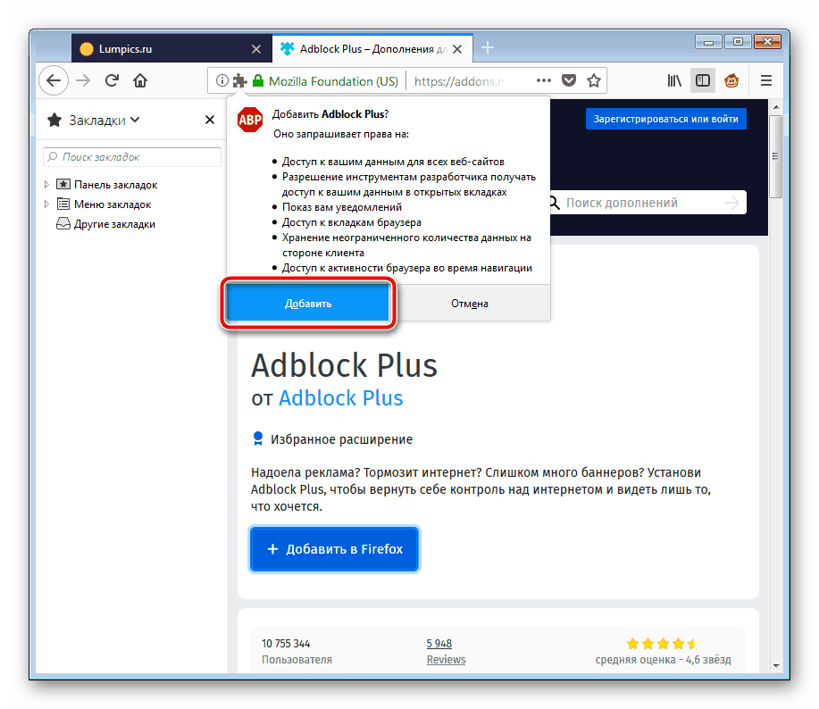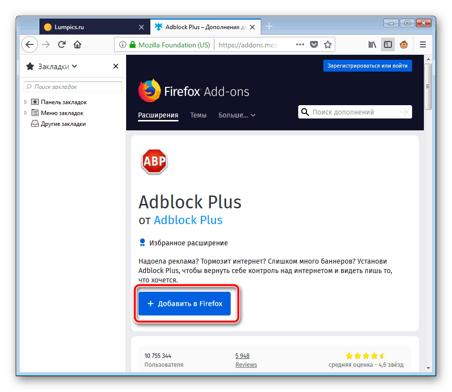 Откройте ее страницу и нажмите на кнопку «Добавить в Firefox».