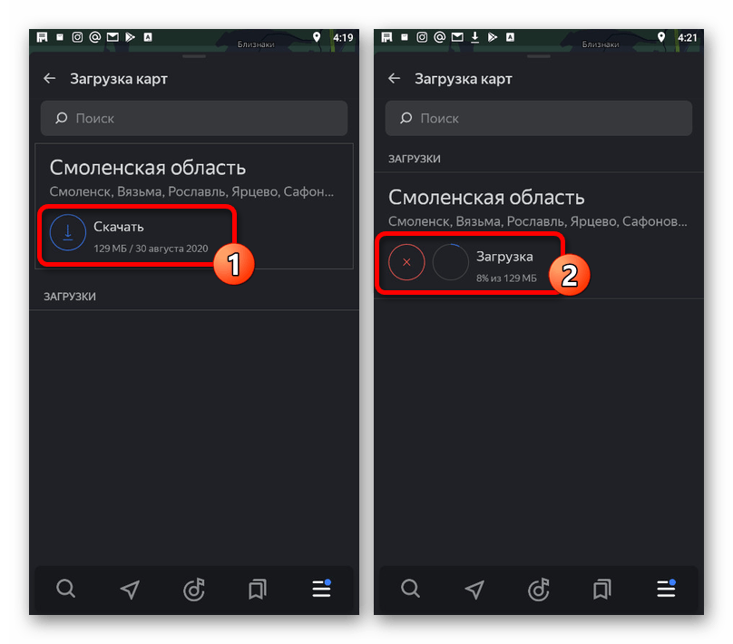 Получить информацию о скачивании каждой офлайн-карты можно на предыдущей странице «Загрузка карт»