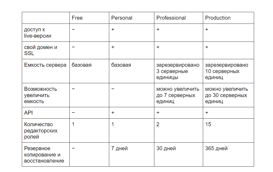 Бесплатный тариф подойдет, чтобы познакомиться с платформой и построить простейшее приложение. А вот решать серьезные задачи для бизнеса получится только на Personal или Professional. Тарифы отличаются выделенной серверной мощностью и объемом дискового пространства. Благодаря гибкой тарификации зерокодер легко подберет эффективный набор опций для приложения. Все зависит от величины проекта и планов на масштабирование.