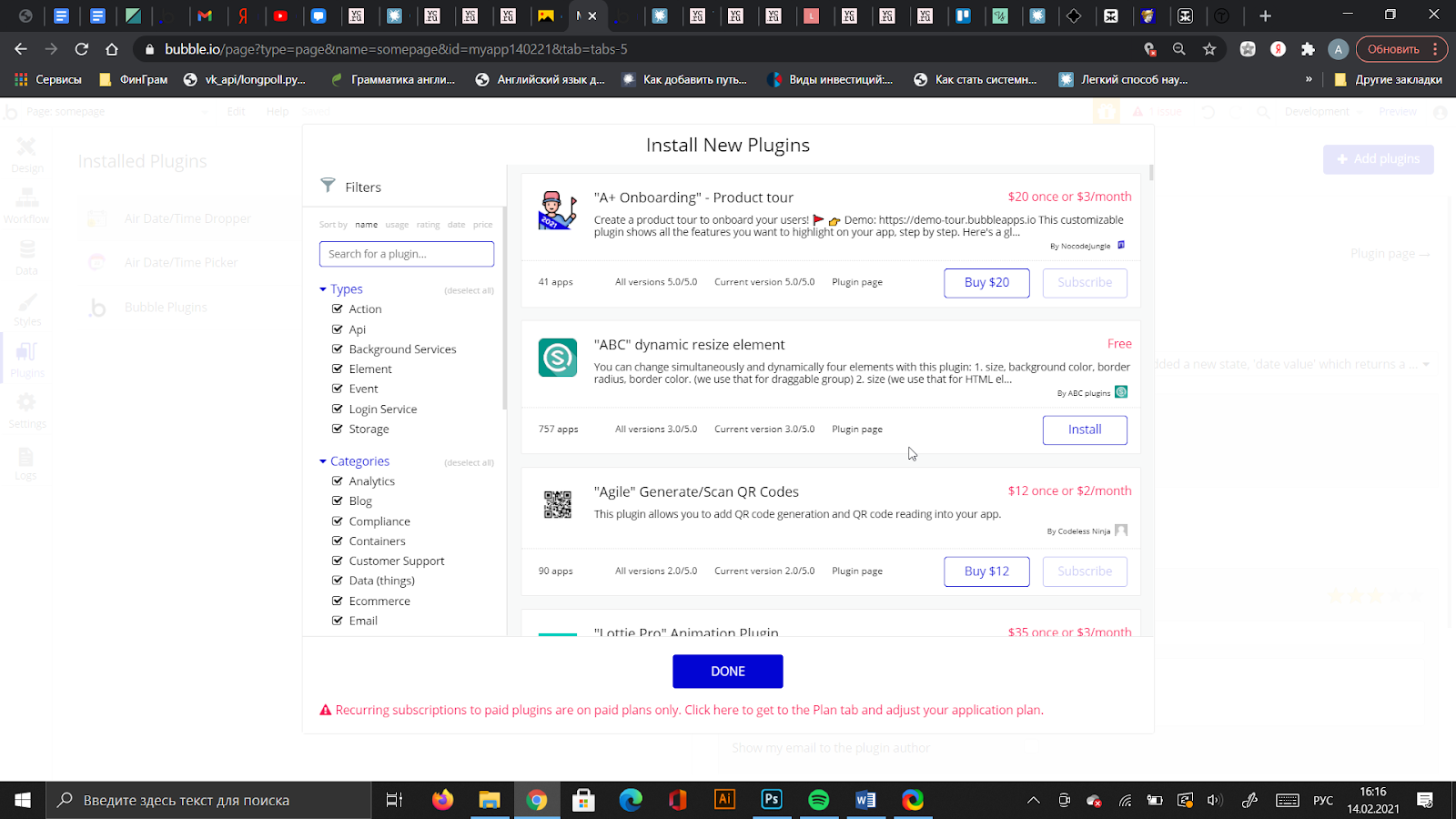 В Bubble есть 4 основных тарифных плана. Один базовый, для знакомства с платформой и три для разработки. Тарифные планы и некоторые опции перечислены в таблице. Подробнее с ними можно ознакомиться на странице bubble.io.