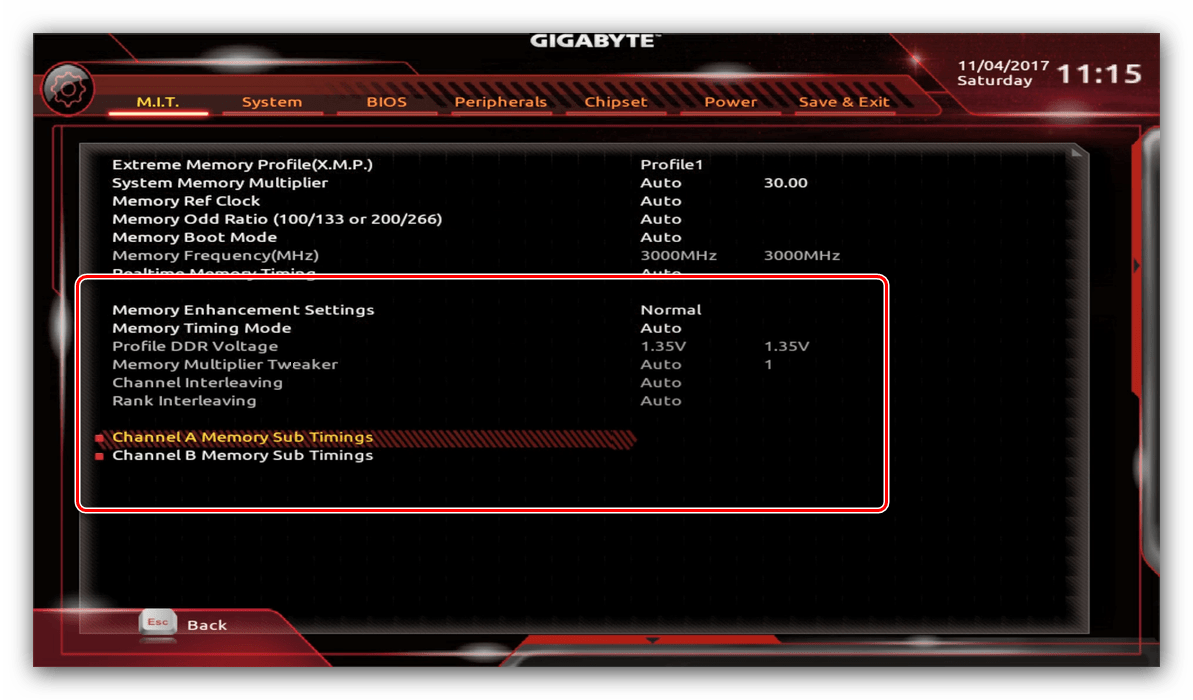 Первое, что нужно сконфигурировать в параметрах БИОСа – тайминги оперативной памяти. Из-за неправильно установленных настроек компьютер может работать некорректно поэтому внимательно следуйте инструкции далее:
