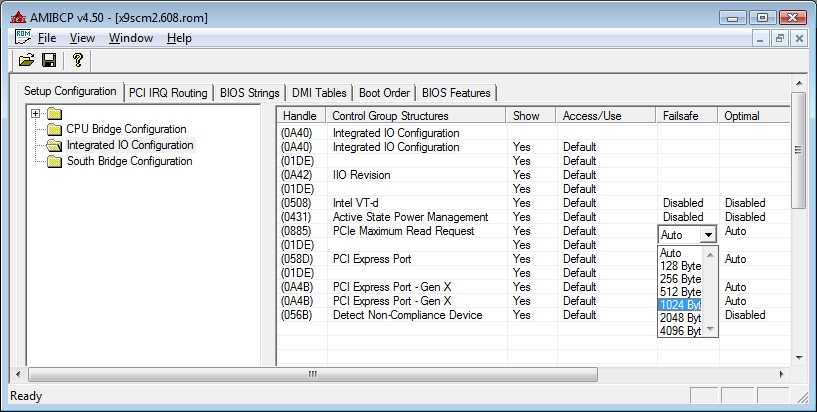 Наиболее важным и интересным для нас будет то, что напрямую связано с обслуживанием шины PCI Express. Таким параметром на представленном скриншоте является PCIe Maximum Read Request. Постараемся разобраться, что означает запрос на чтение в применении к логике работы PCIe-шины.