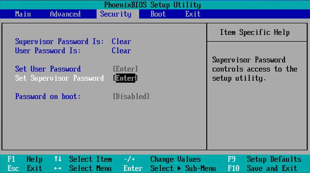 - Supervisor Password — настройка пароля доступа в BIOS;